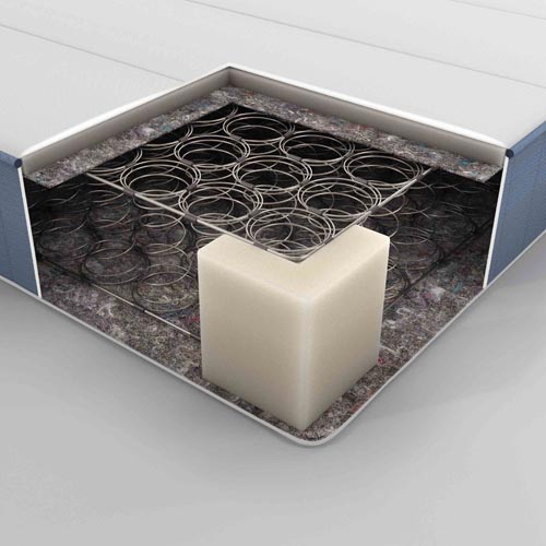 Анатомическая пена в составе матраса — комфортный барьер между пружинным блоком и спальной поверхностью, позволяет принять удобное положение во время сна. Еще один дополнительный слой — хлопковый войлок — защищает и амортизирует пружинный блок, а также выполняет роль терморегулятора, давая летом больше прохлады, а зимой — тепла.